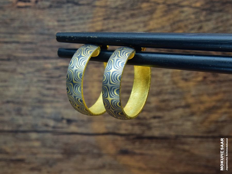 |  Mokume Gane Creolen mit Brillanten Nr O15-09 Handarbeit, Unikat